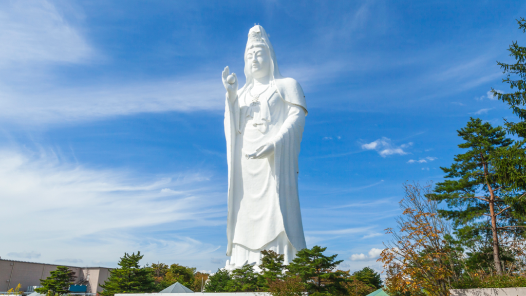 This statue is dedicated to Kannon (Guanyin) – Byakue Kannon. The monument depicts the bodhisattva Guanyin or Avalokitesvara. In other locations and by locals, it is also known as the Hokkaido Kannon and the Byakue Kannon. It was considered the tallest statue in the world when it opened in 1989 and held this world record till 1991. It is also the third-largest statue of Japan.