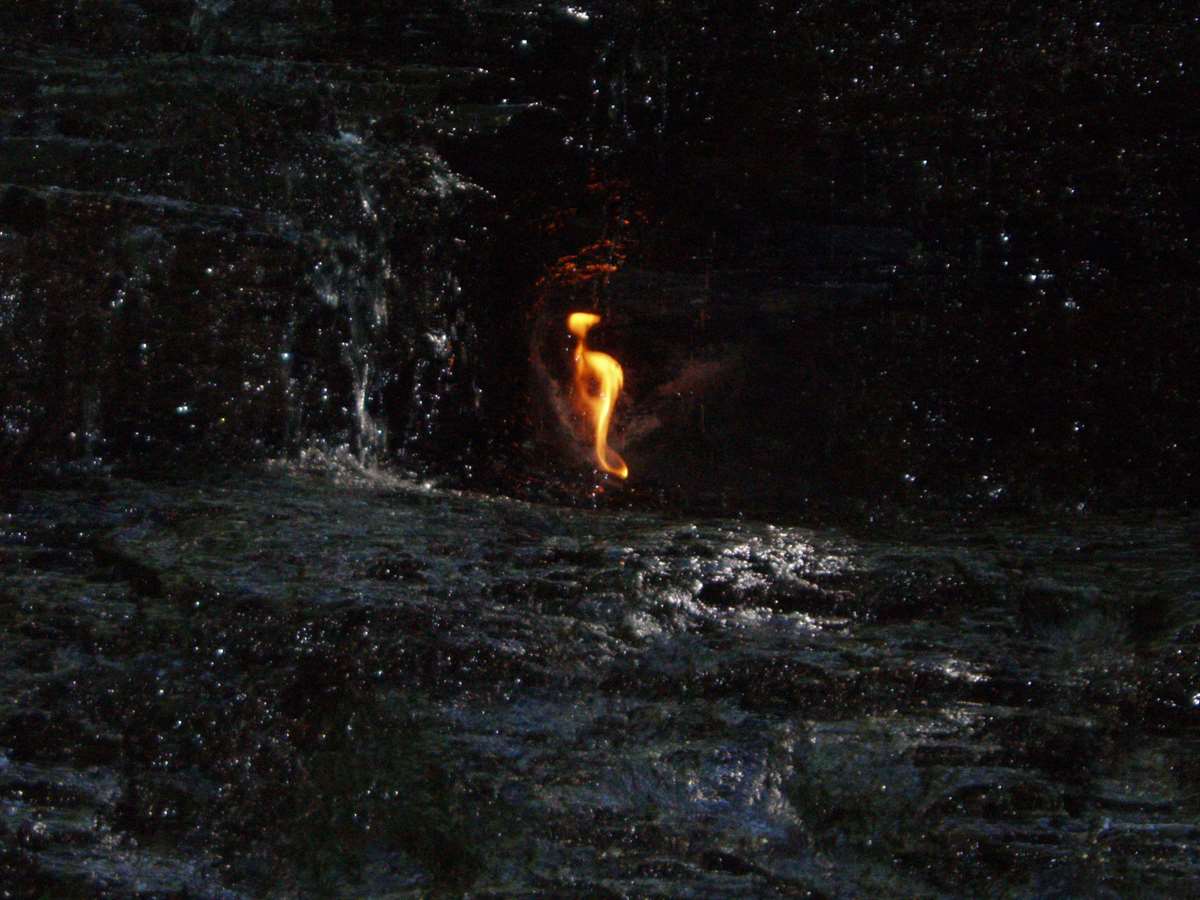 You’ll initially see the beautiful falls themselves, cascading down over layers of chiseled granite rock. Then comes the flame, which might be seen unsteady behind cataracts. It ne’er goes out, and scientists say the inferno is made by the presence of gas leaky from the subterrane.