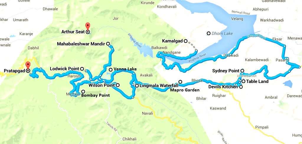 The total area of Mahabaleshwar is stretched around 137.15 square km and elevated for 4,439 ft above sea level. Just have a look at physical map of tourist points.