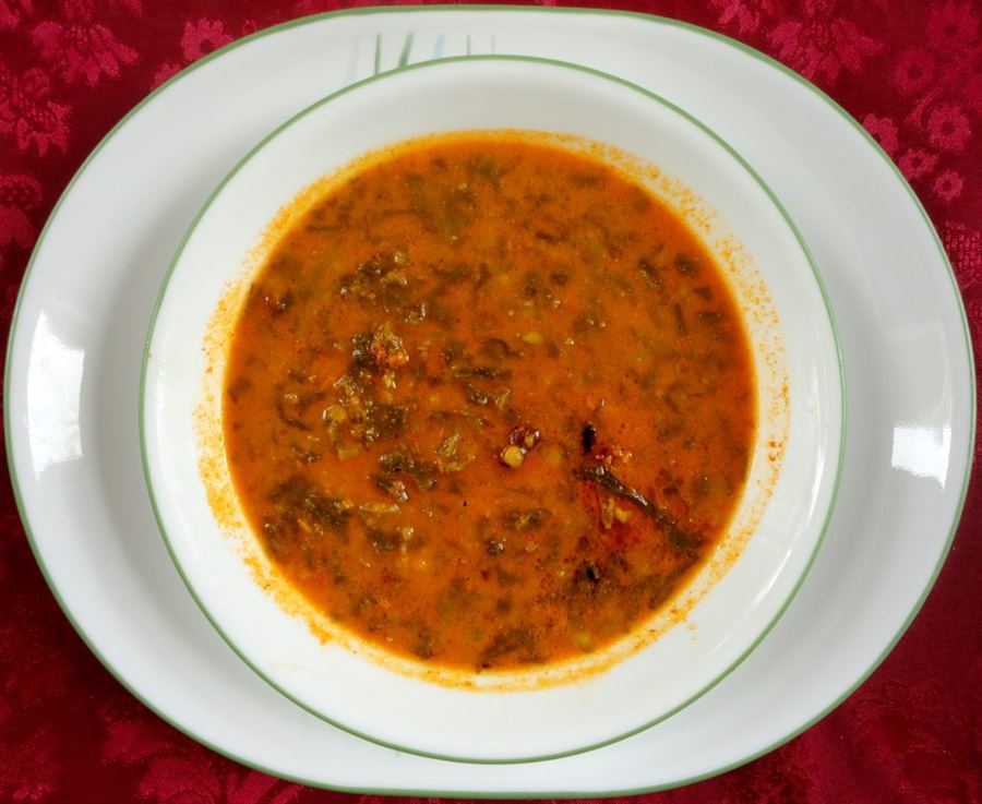 It is prepared with at least five seasonal vegetables, grated coconut, Jaggery, Kokum, Triphala and spices. Of these, Triphala is the main element of this cuisines. This gravy is rich in nutrients and proteins. It is served with rice and chapati.