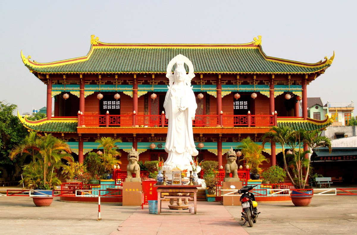 This pagoda is covered by huge trees and designed following the ladder structure, which goes higher in each step. Having an impressive “triangular gate” that leads to a white statue of Goddess of Mercy situated in the middle area of the yard, the pagoda attracts a huge number of tourists to visit. If you want to learn more about the ancient architecture of the pagoda and get some knowledge about one of the most Phu Quoc island attractions, then this site is for you.
