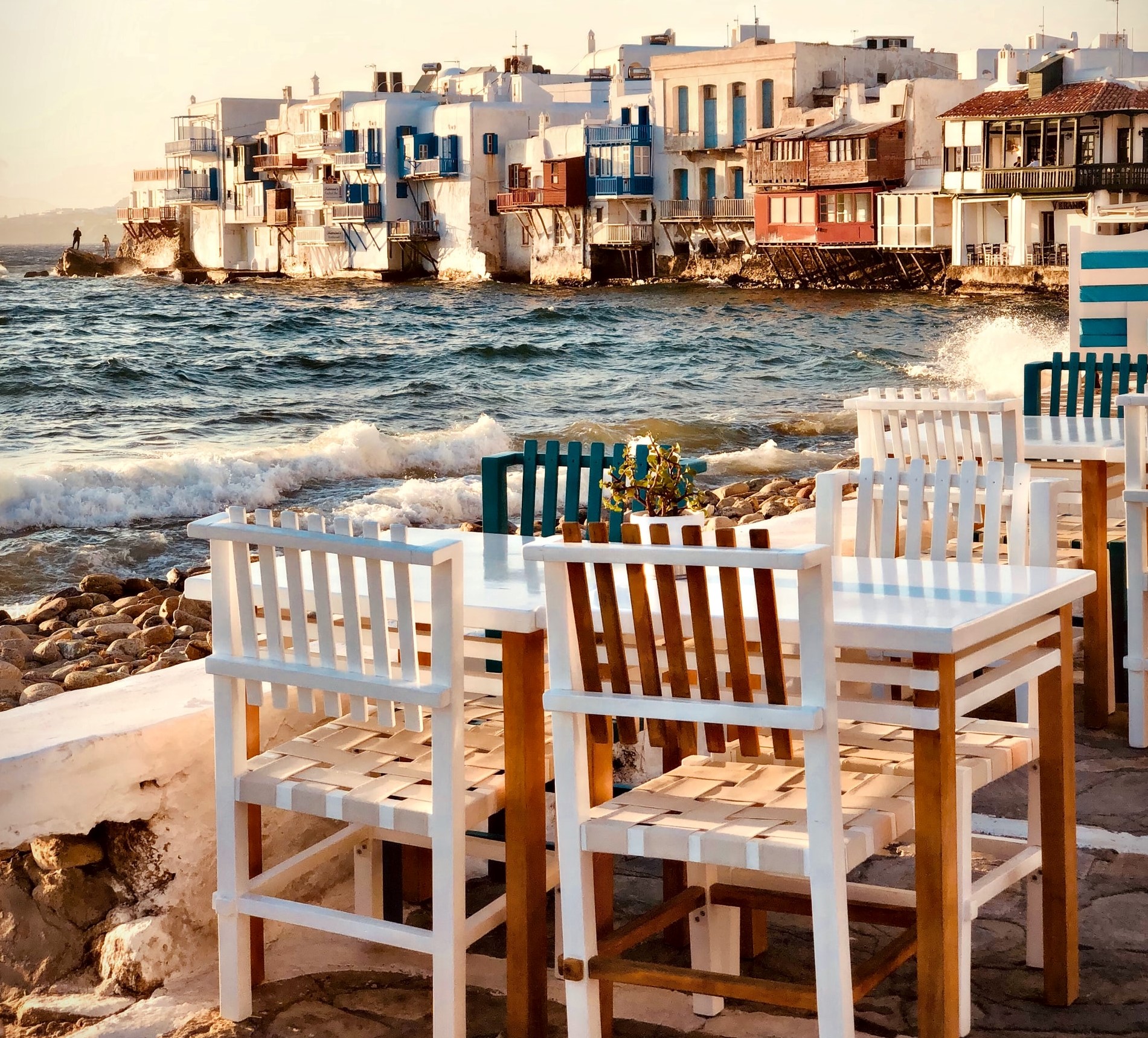 One of the most romantic spots in Mykonos for couples is adorable Little Venice. These are actually beautiful cubical buildings that represent Venetianar architecture due to their waterfront balconies.