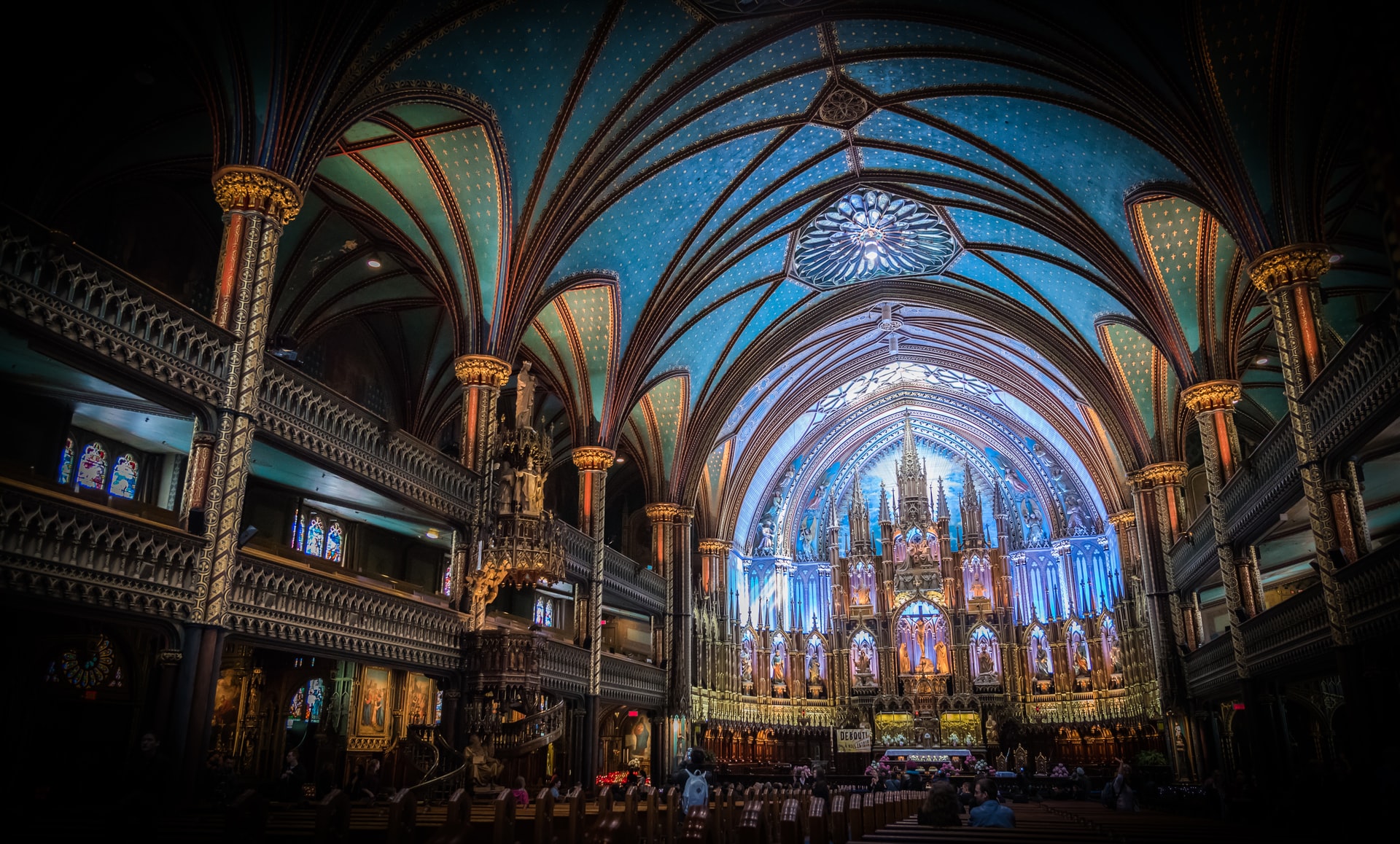 The Neo-Gothic façade’s twin towers face the Place d’Armes. Victor Bourgeau designed the intricate and adorned interior. The impressive carved pulpit by the sculptor Louis-Philippe Hebert, the Casavant Freres company’s 7,000-pipe organ, and the stained-glass windows showing beautiful scenes of Montreal are highlights of Notre Dame Basilica.